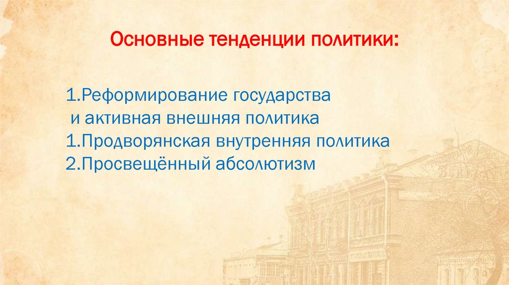 Основные тенденции политики:1.Реформирование государства