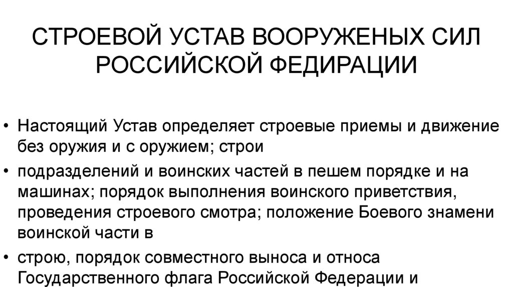 СТРОЕВОЙ УСТАВ ВООРУЖЕНЫХ СИЛРОССИЙСКОЙ ФЕДИРАЦИИ
