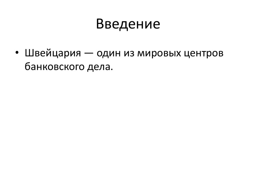 Введение• Швейцария — один из мировых центров