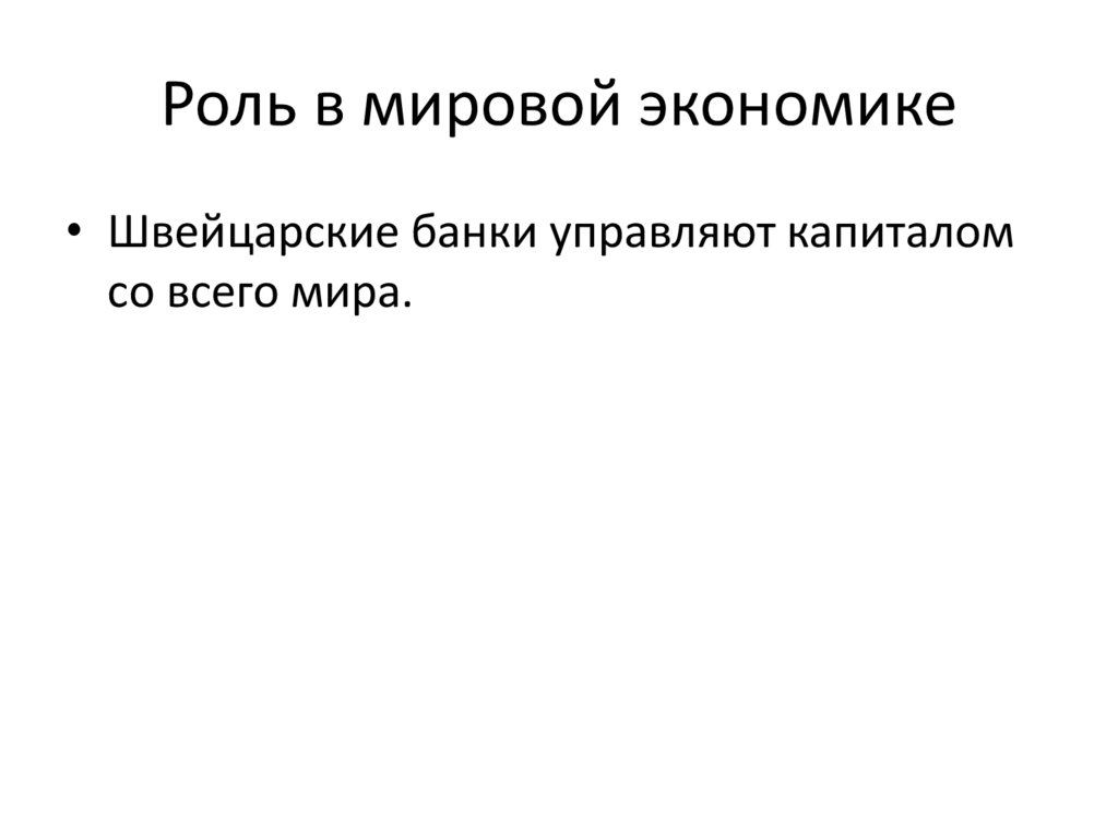 Роль в мировой экономике• Швейцарские банки управляют капиталом