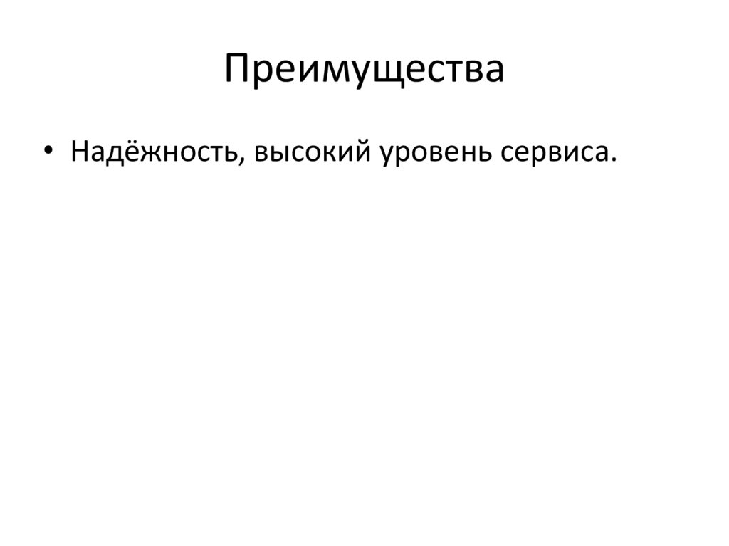 Преимущества• Надёжность, высокий уровень сервиса.