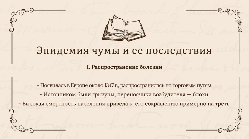 Эпидемия чумы и ее последствияI. Распространение болезни