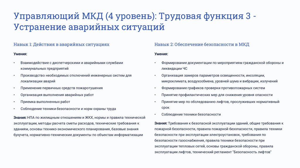 Управляющий МКД (4 уровень): Трудовая функция 3 Устранение аварийных ситуацийНавык 1: Действия в аварийных ситуациях