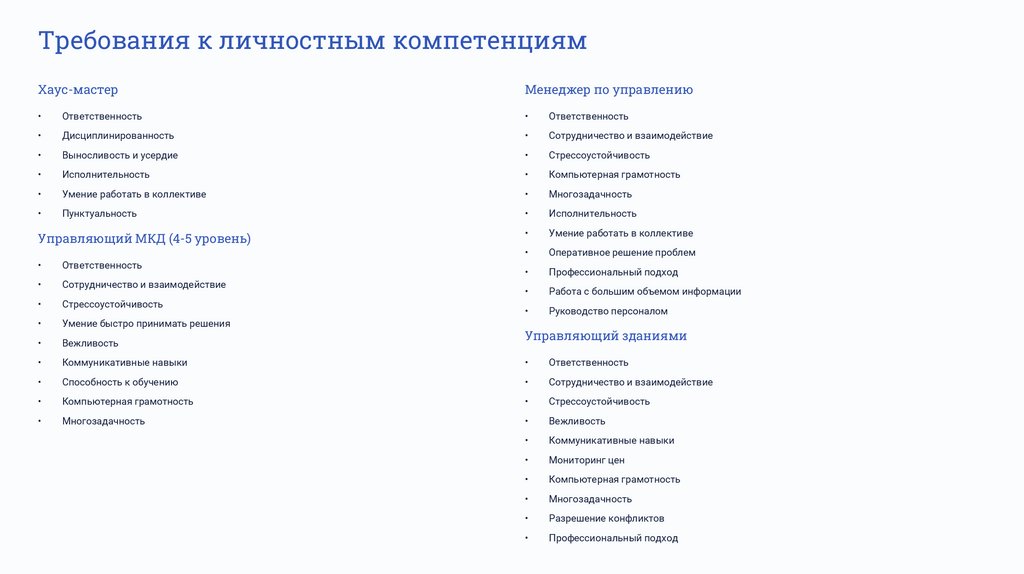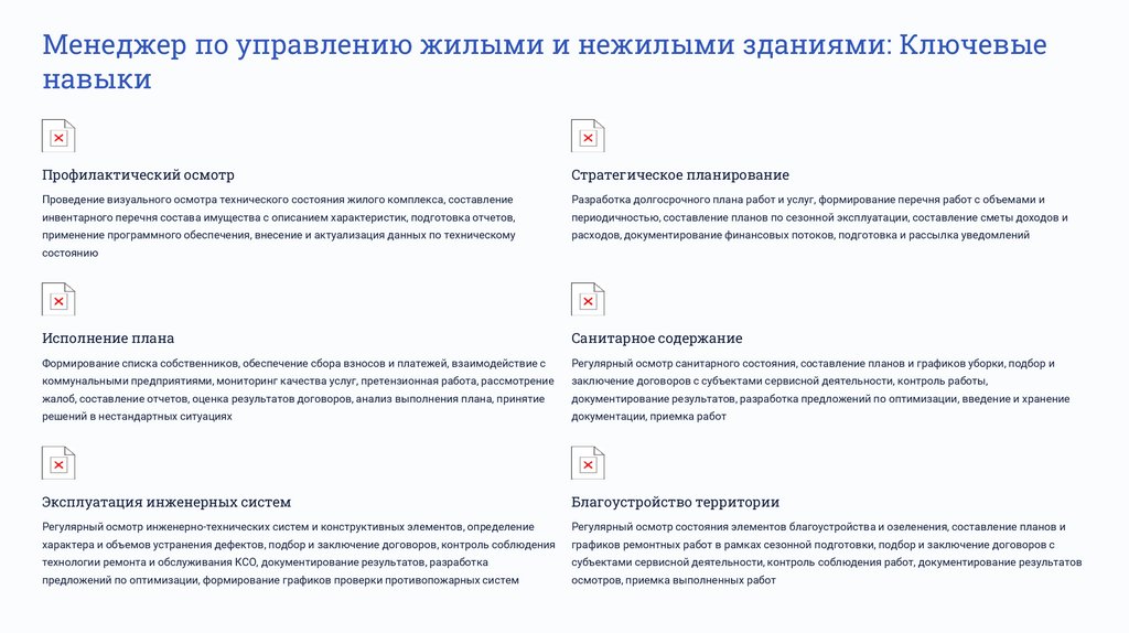 Менеджер по управлению жилыми и нежилыми зданиями: Ключевыенавыки
