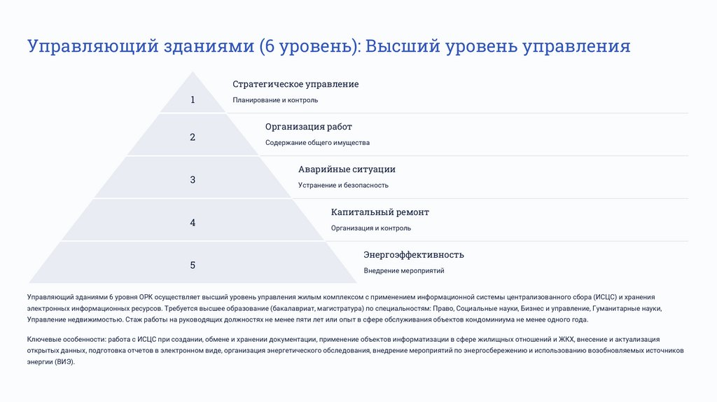 Управляющий зданиями (6 уровень): Высший уровень управленияСтратегическое управление