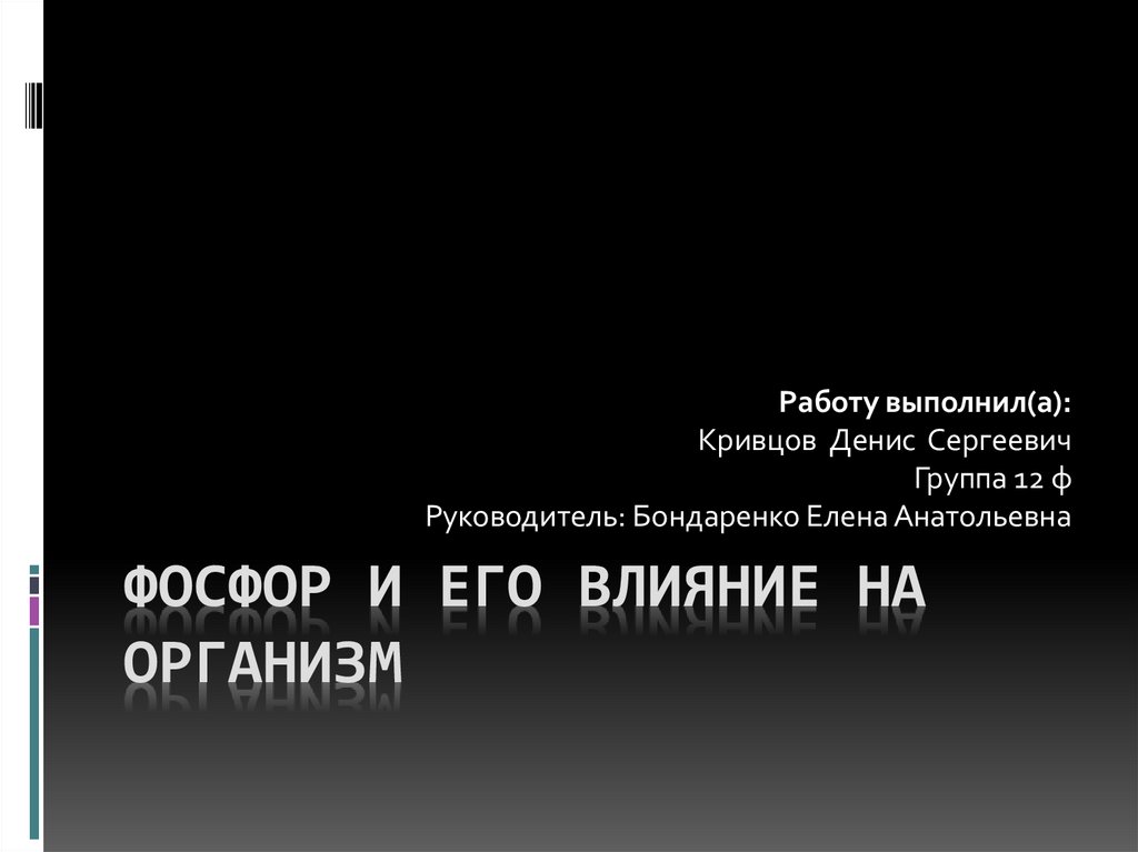 ФОСФОР И ЕГО ВЛИЯНИЕ НА
