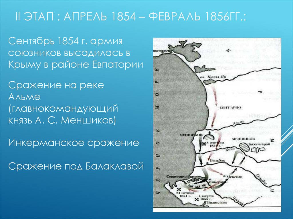 II ЭТАП : АПРЕЛЬ 1854 – ФЕВРАЛЬ 1856ГГ.:Сентябрь 1854 г. армия