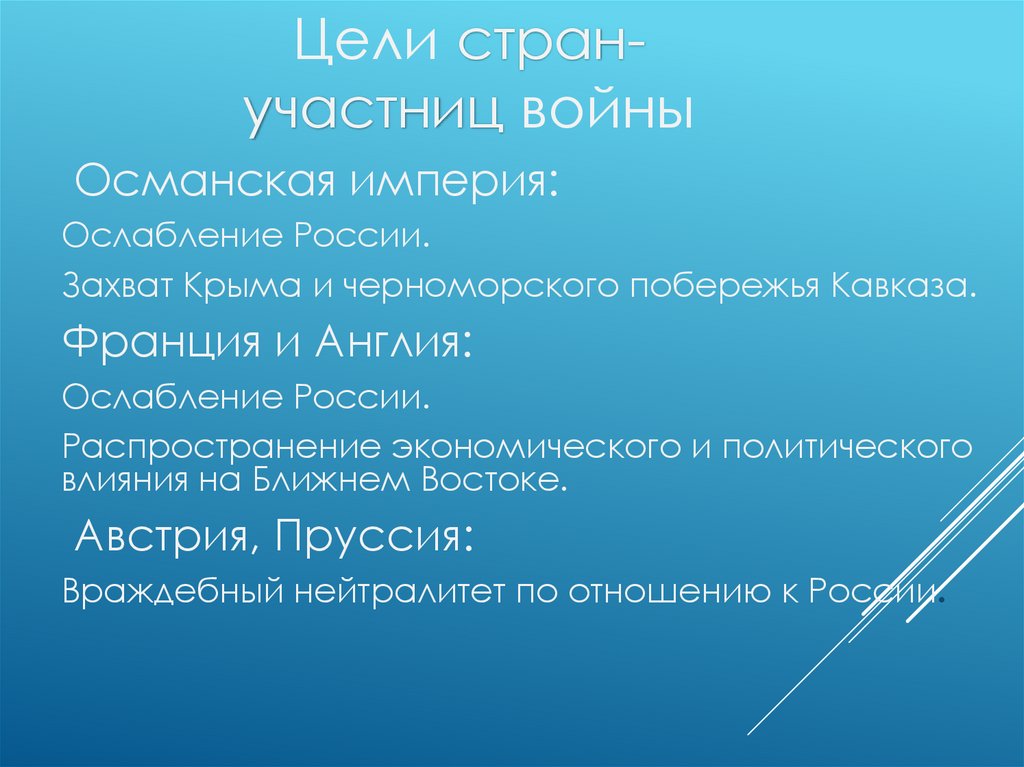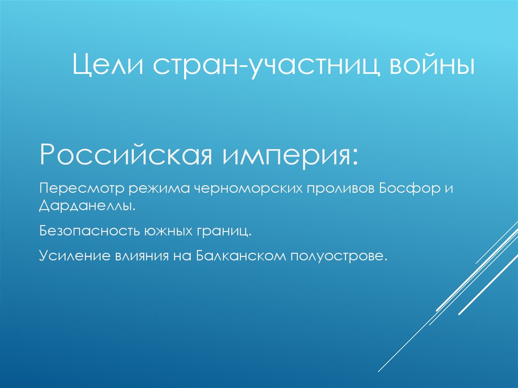 Цели стран-участниц войныРоссийская империя: