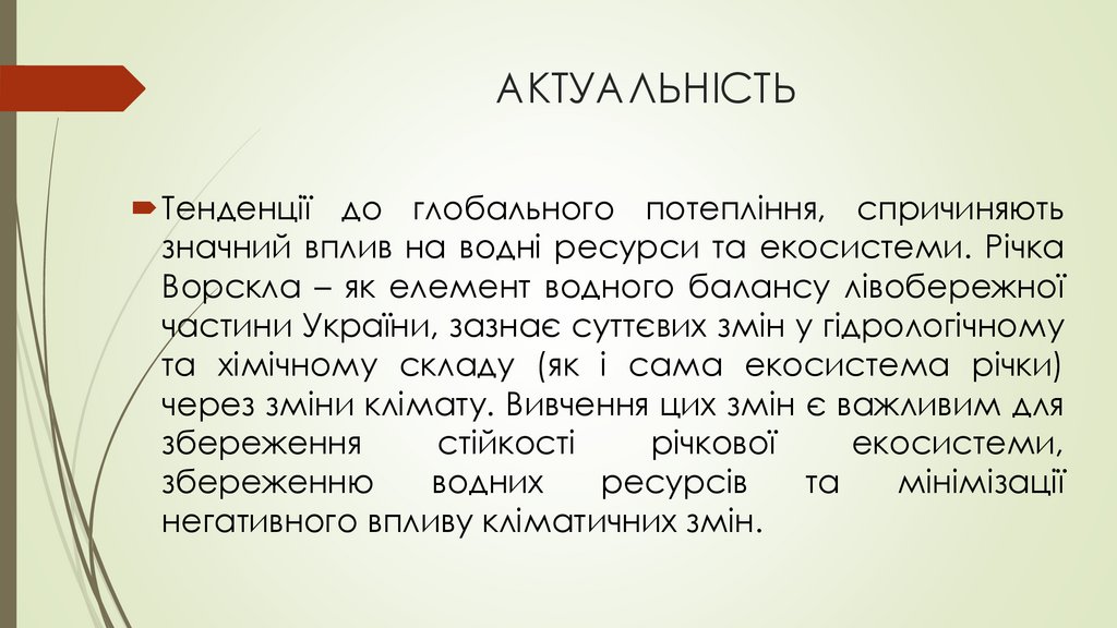 АКТУАЛЬНІСТЬТенденції до глобального потепління, спричиняють