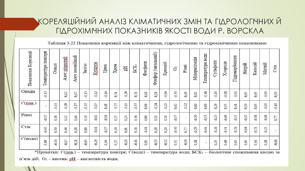 КОРЕЛЯЦІЙНИЙ АНАЛІЗ КЛІМАТИЧНИХ ЗМІН ТА ГІДРОЛОГІЧНИХ ЙГІДРОХІМІЧНИХ ПОКАЗНИКІВ ЯКОСТІ ВОДИ Р. ВОРСКЛА