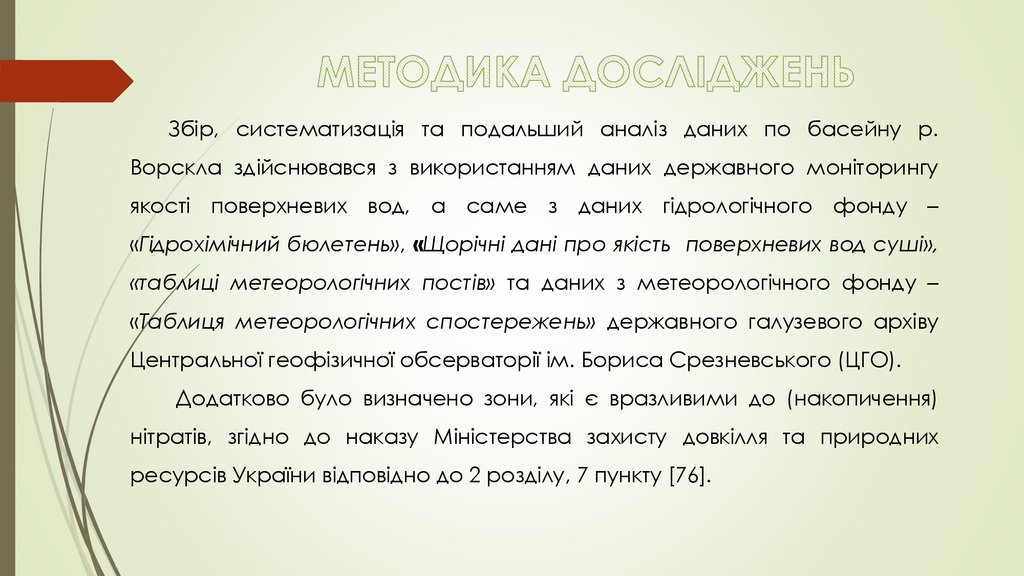 МЕТОДИКА ДОСЛІДЖЕНЬЗбір, систематизація та подальший аналіз даних по басейну р.