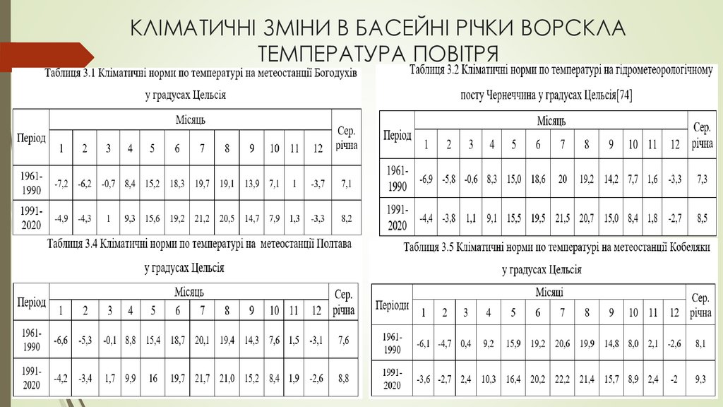 КЛІМАТИЧНІ ЗМІНИ В БАСЕЙНІ РІЧКИ ВОРСКЛАТЕМПЕРАТУРА ПОВІТРЯ