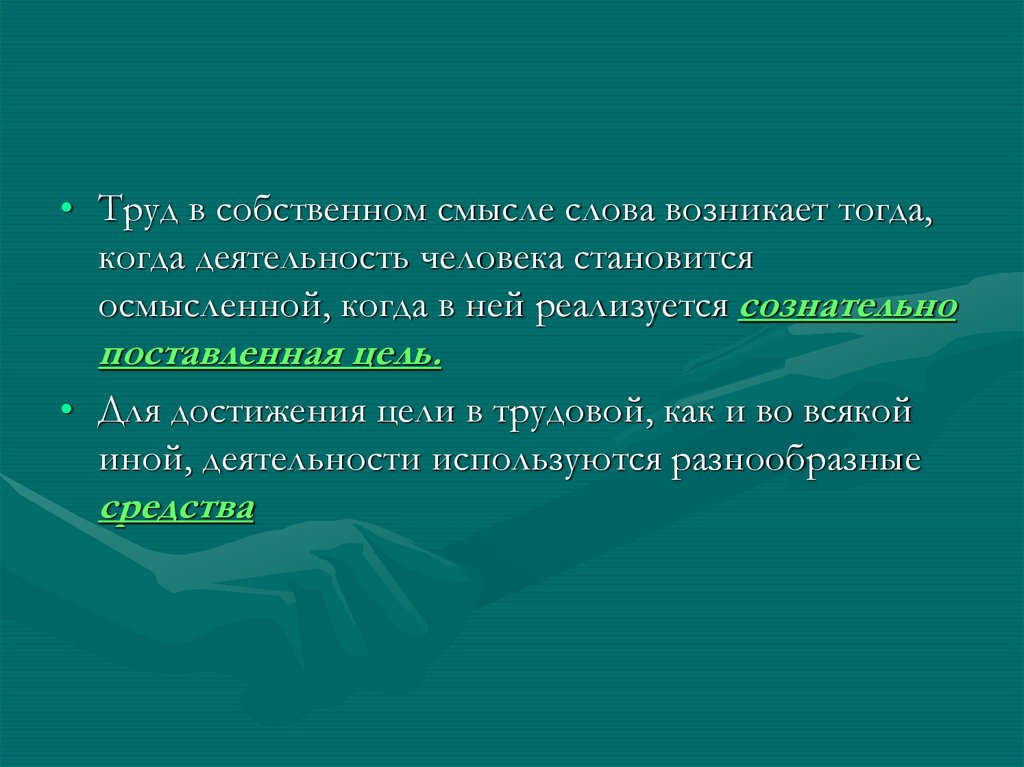 • Труд в собственном смысле слова возникает тогда,когда деятельность человека становится