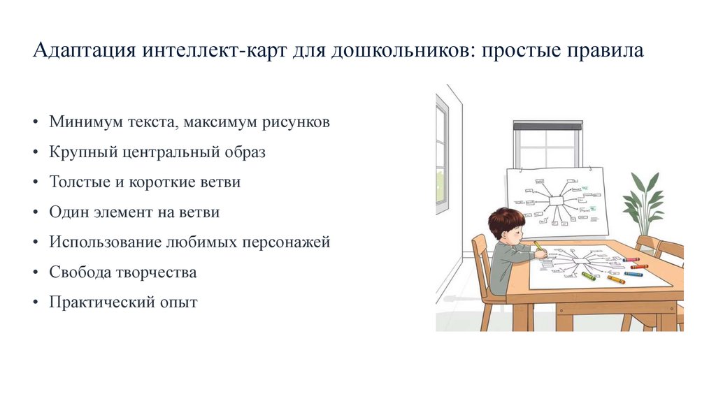 Адаптация интеллект-карт для дошкольников: простые правила• Минимум текста, максимум рисунков