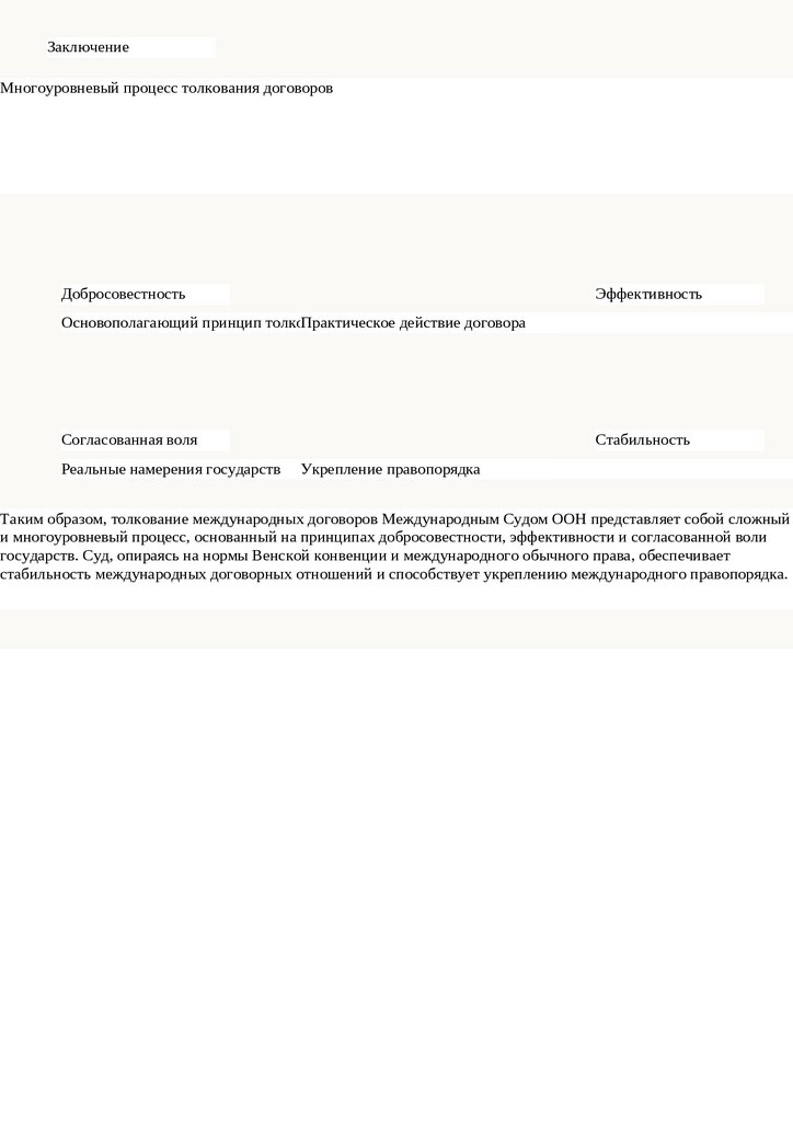 Таким образом, толкование международных договоров Международным Судом ООН представляет собой сложный