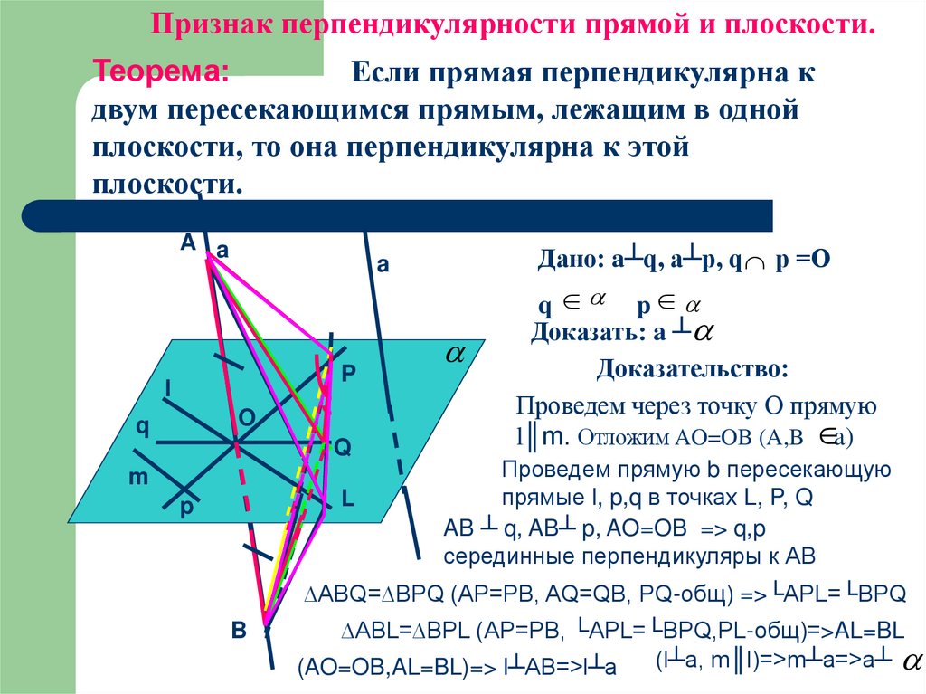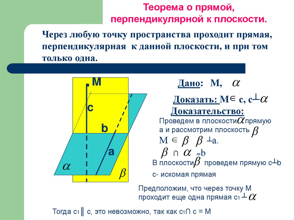 Теорема о прямой,перпендикулярной к плоскости.