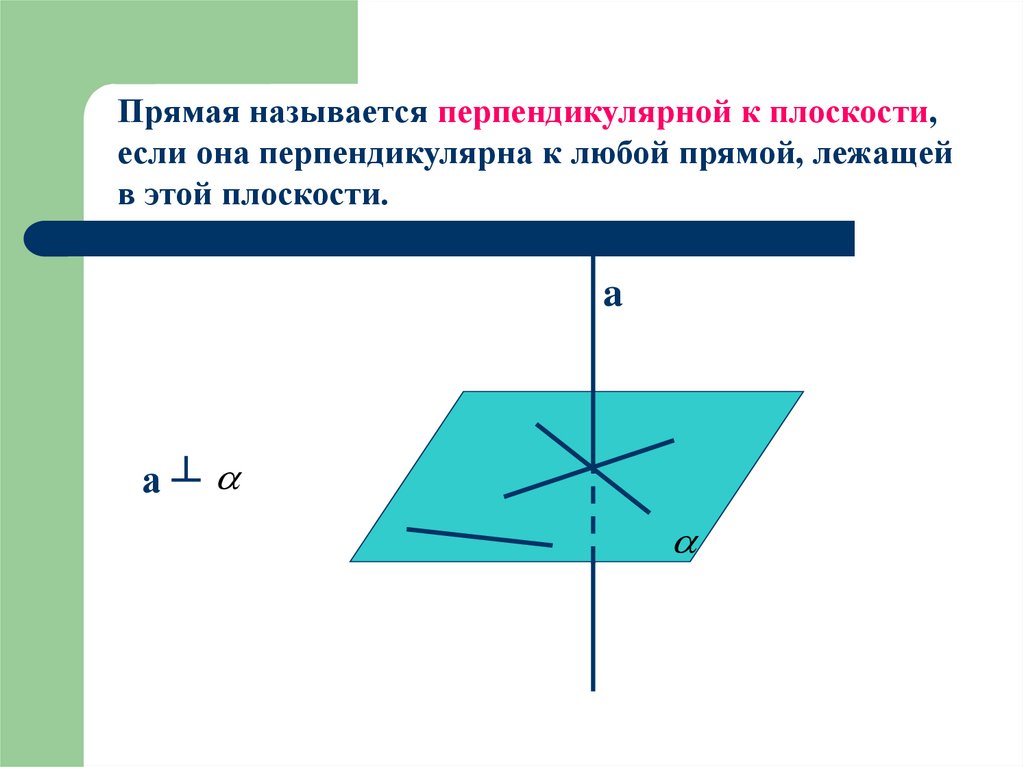 Прямая называется перпендикулярной к плоскости,если она перпендикулярна к любой прямой, лежащей