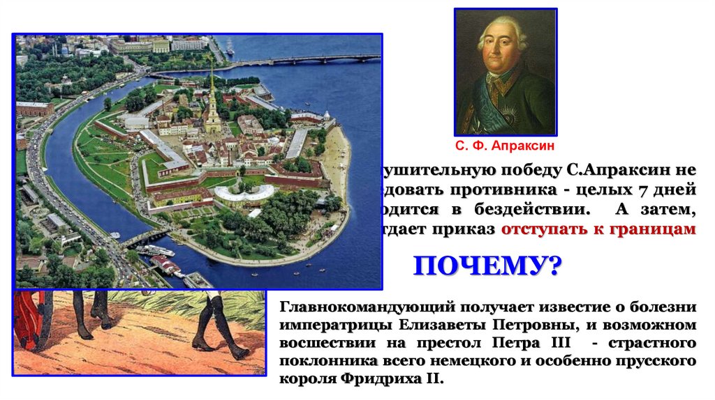 С. Ф. АпраксинОдержав внушительную победу С.Апраксин не