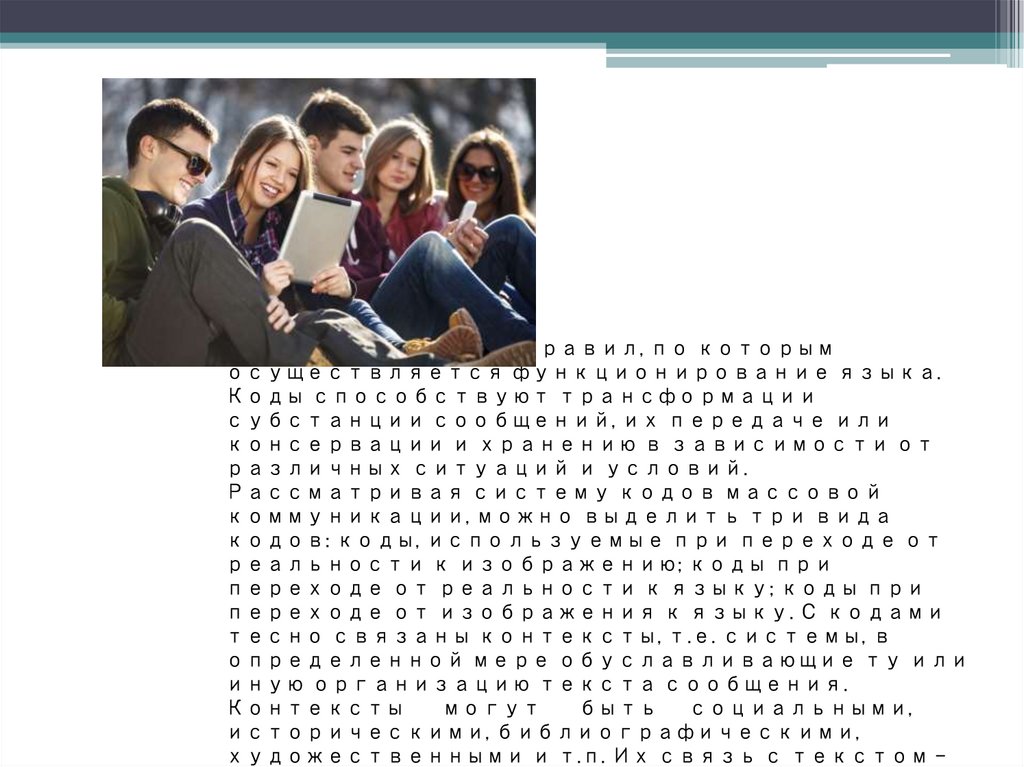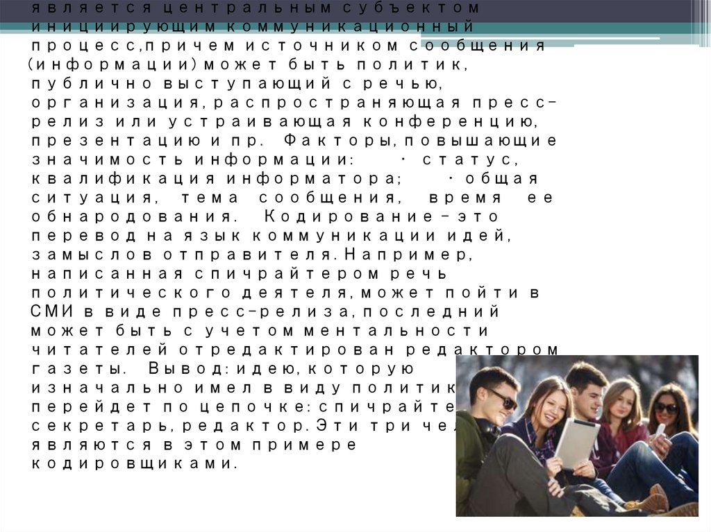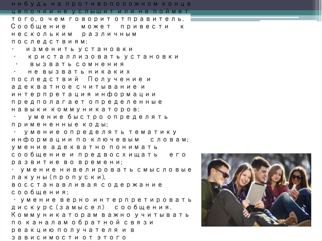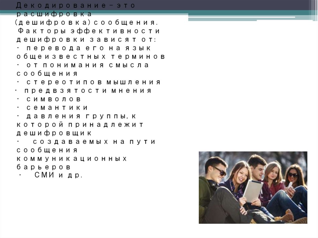 на видеокамеру и т.д. Получатель информации декодирует, т.е.