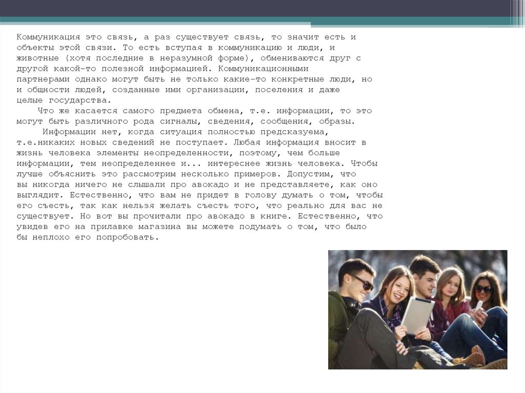 Что же касается самого предмета обмена, т.е. информации, то это
