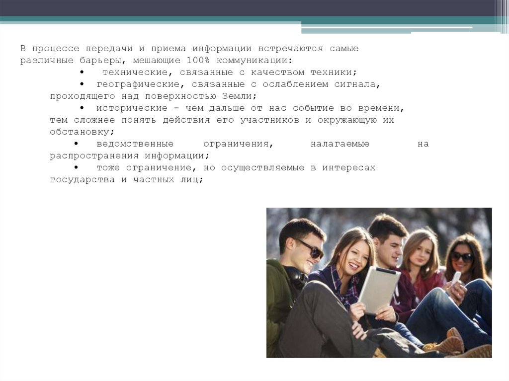 В процессе передачи и приема информации встречаются самыеразличные барьеры, мешающие 100% коммуникации: