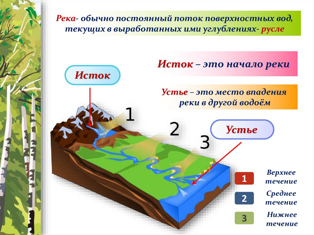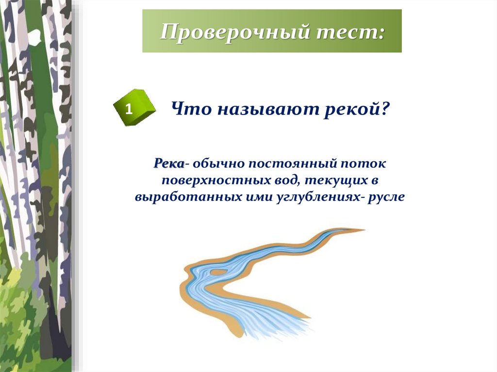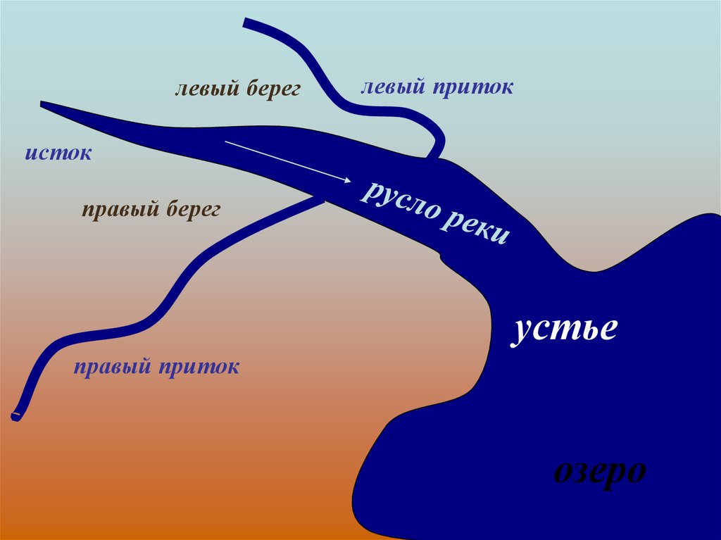 Река- обычно постоянный поток поверхностных вод,текущих в выработанных ими углублениях- русле