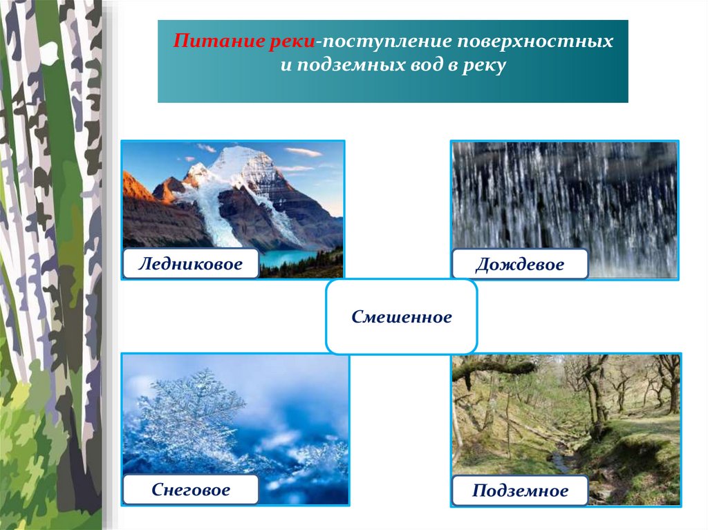 Питание реки-поступление поверхностныхи подземных вод в реку