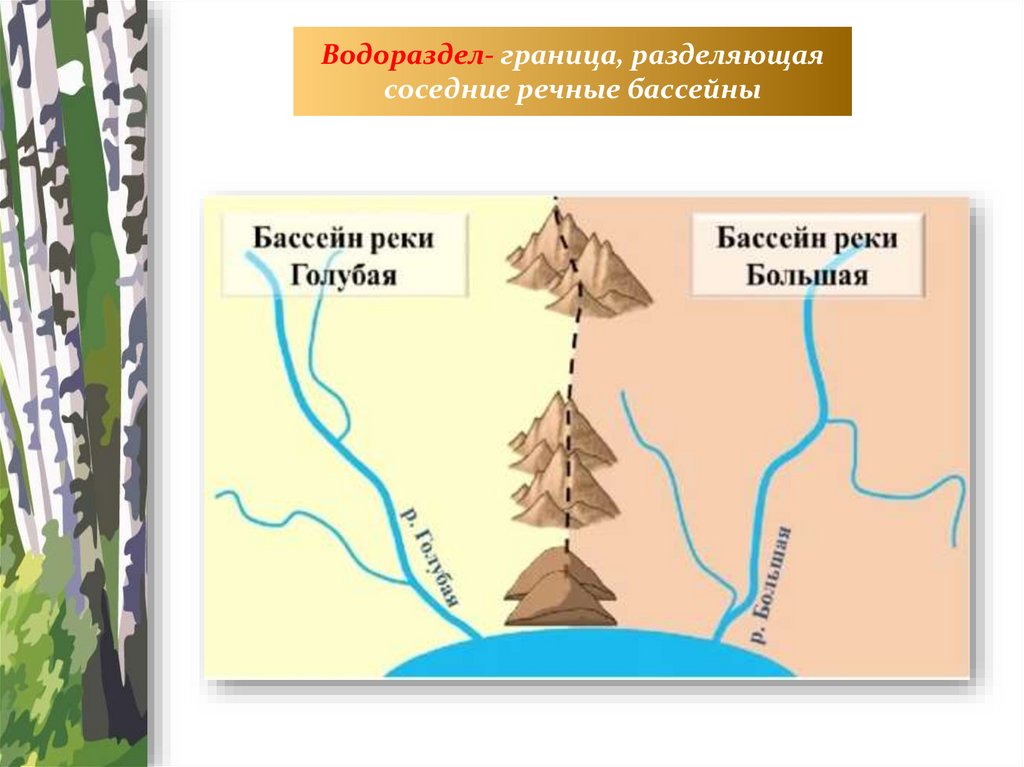 Водораздел- граница, разделяющаясоседние речные бассейны