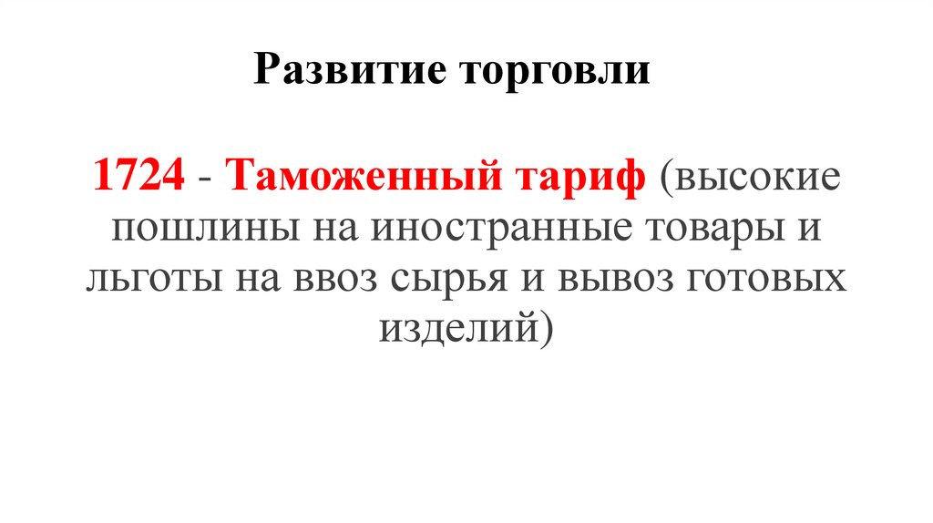 Развитие торговли1724 - Таможенный тариф (высокие