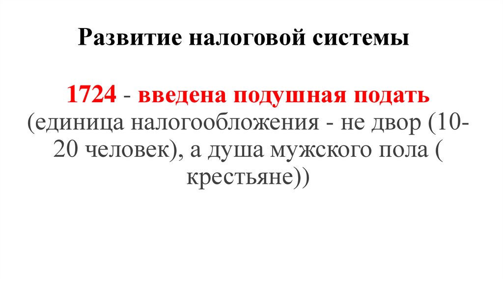 Развитие налоговой системы1724 - введена подушная подать