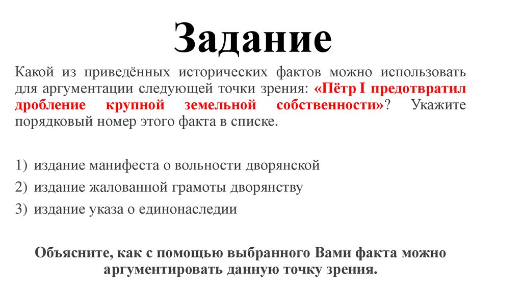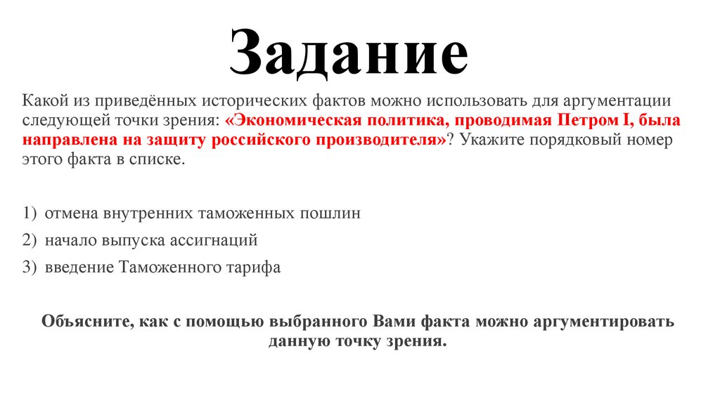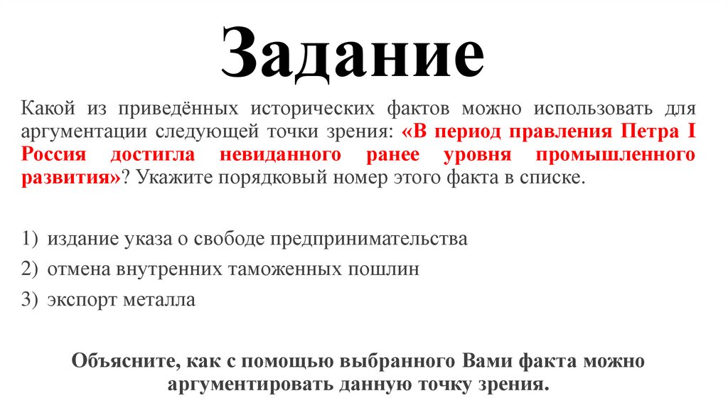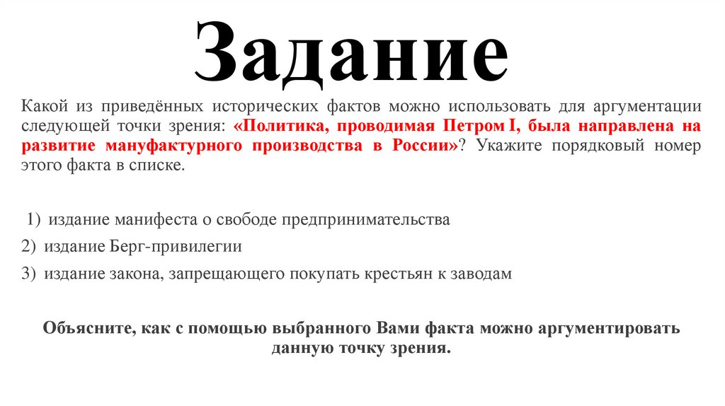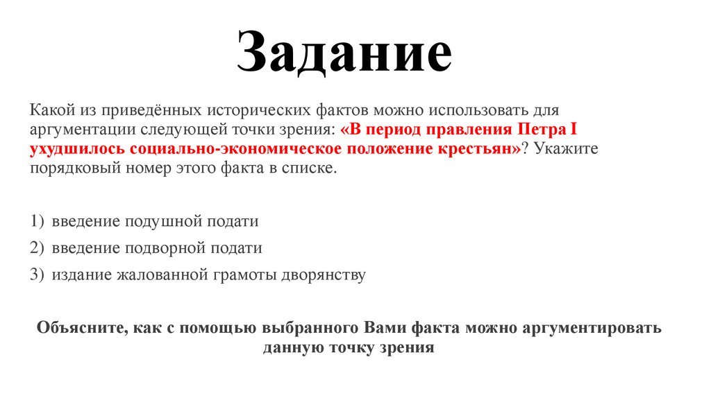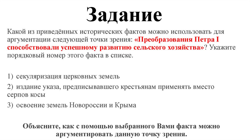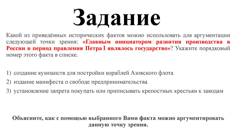 ЗаданиеКакой из приведённых исторических фактов можно использовать для аргументации