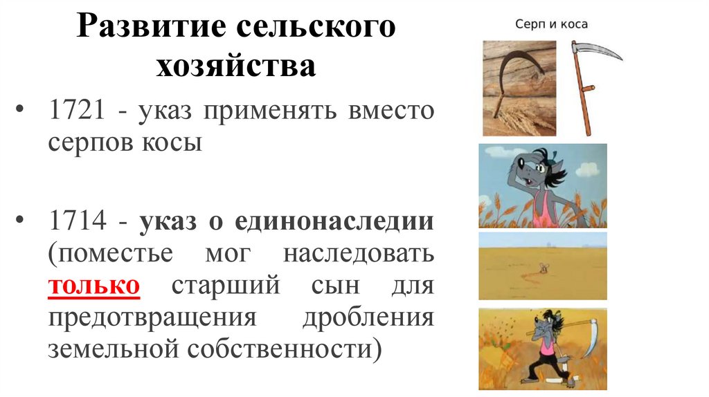 способствовали успешному развитию сельского хозяйства»? Укажите