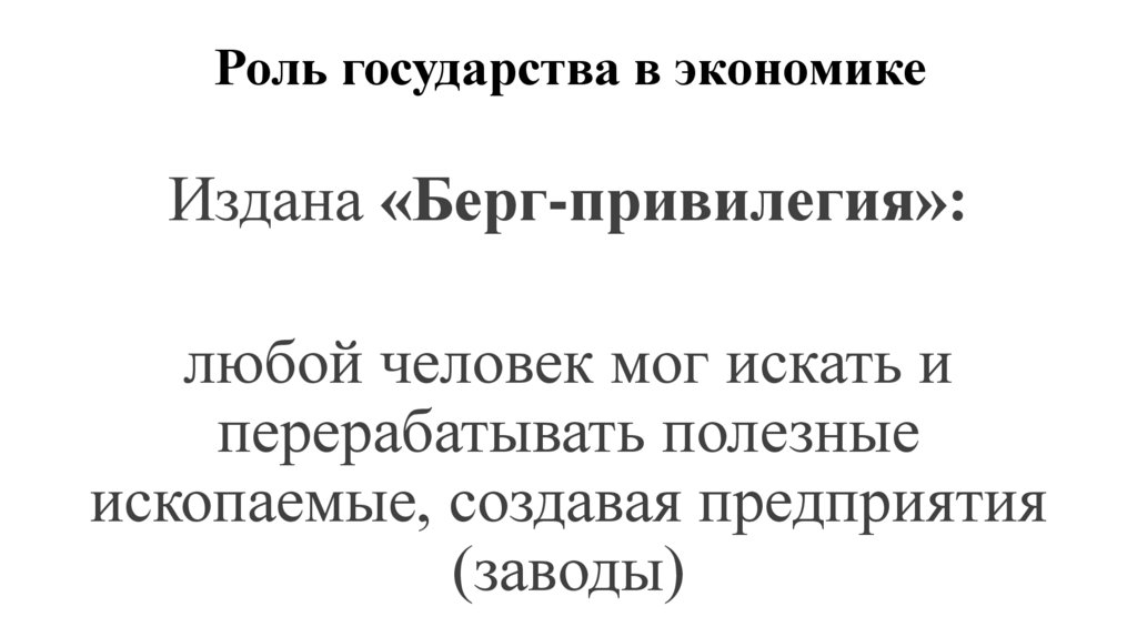 Роль государства в экономикеИздана «Берг-привилегия»:
