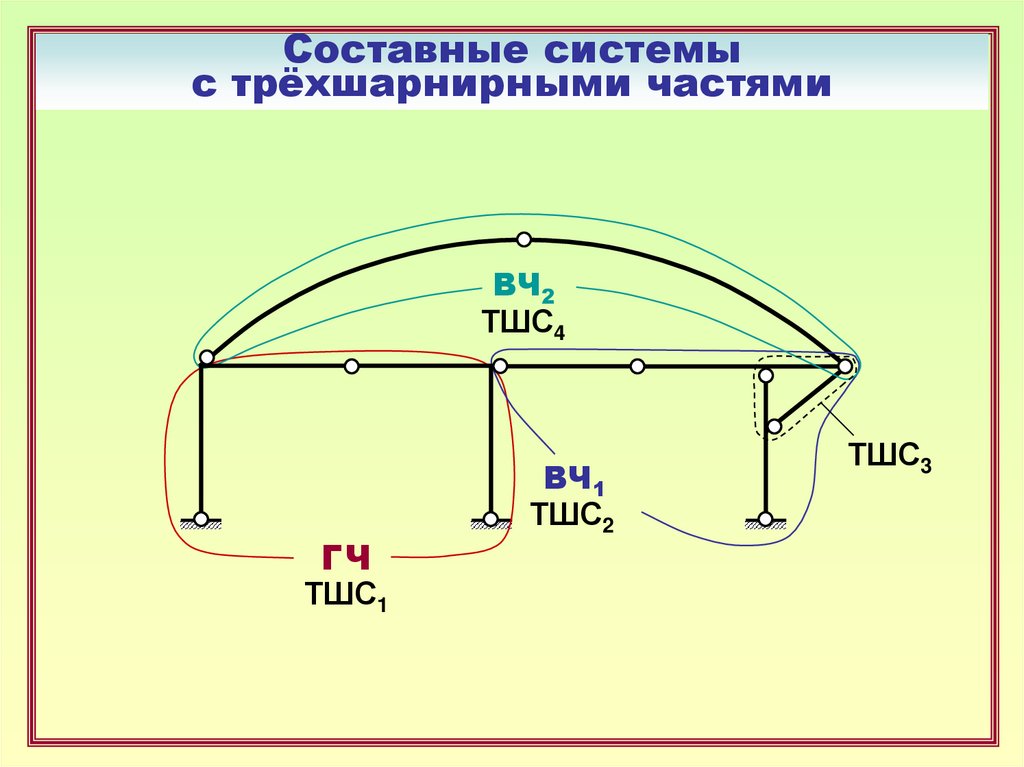 20. Порядок расчёта составных систем с трёхшарнирными частями. ( 13 )