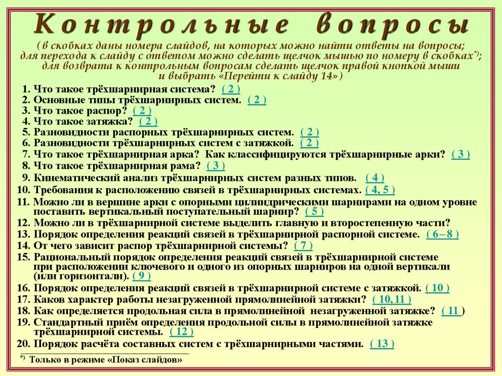 Контрольные вопросы( в скобках даны номера слайдов, на которых можно найти ответы на вопросы;