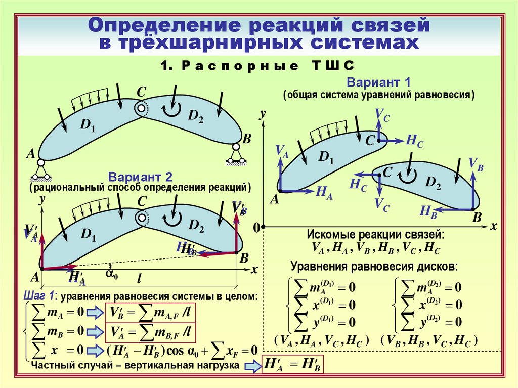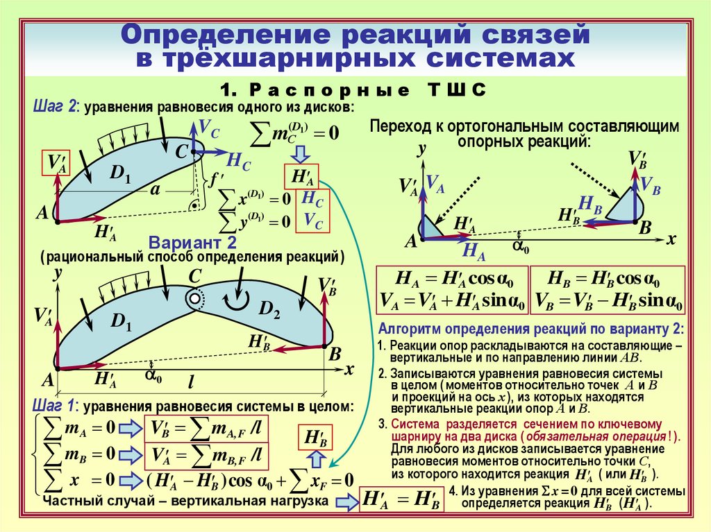 13. Порядок определения реакций связей в трёхшарнирной распорной системе. ( 6 – 8 )