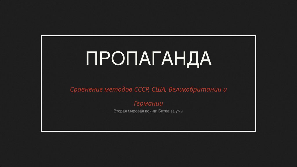 ПРОПАГАНДАСравнение методов СССР, США, Великобритании и