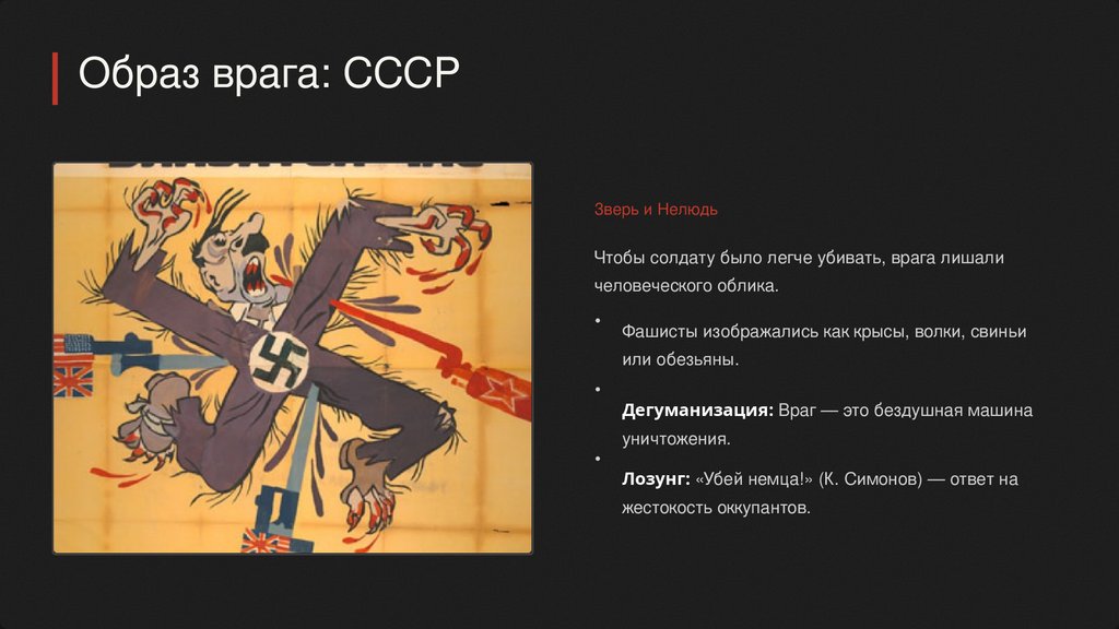 Образ врага: ГерманияВраг изображался как биологически неполноценное