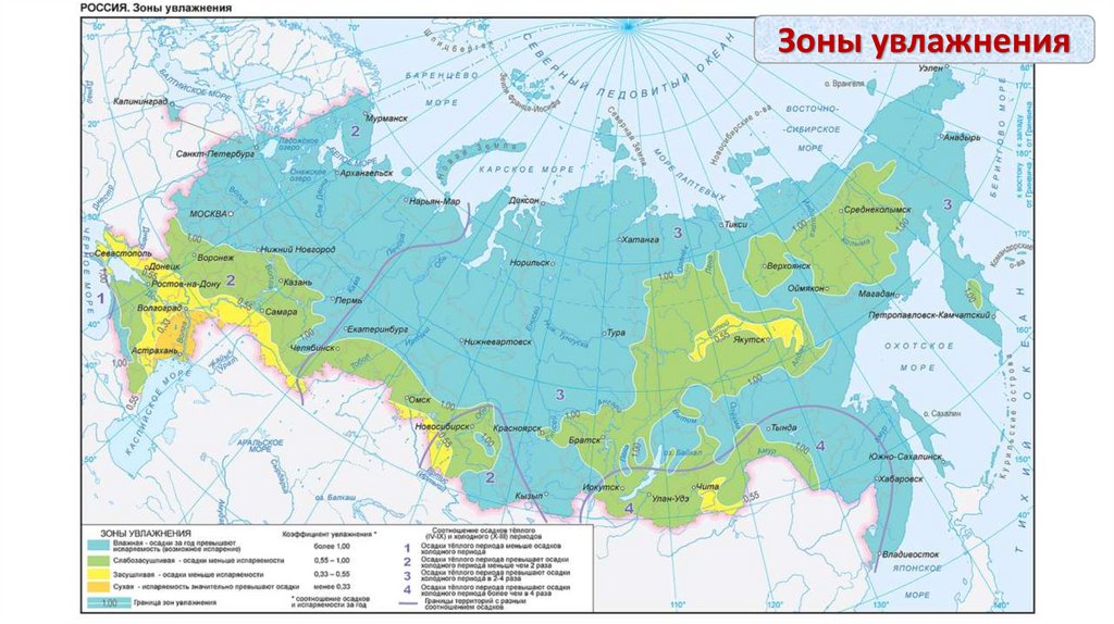 1. Распределение атмосферных осадков по территории россии. Коэффициент увлажнения.