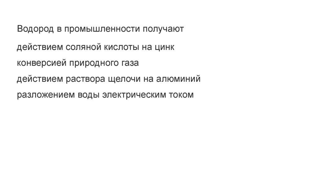 Водород в промышленности получаютдействием соляной кислоты на цинк