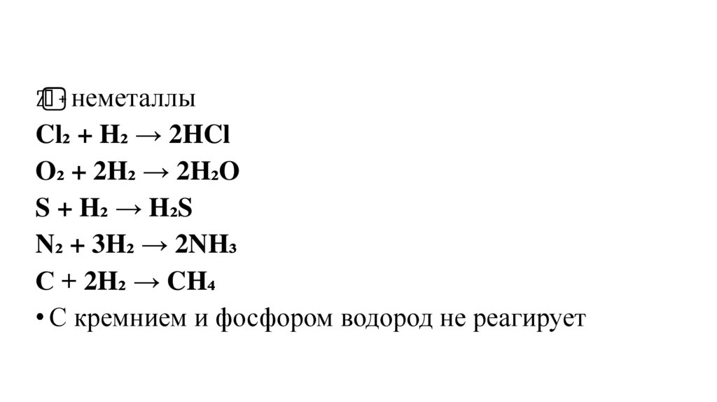 2 ⃣ + неметаллыCl₂ + H₂ → 2HCl