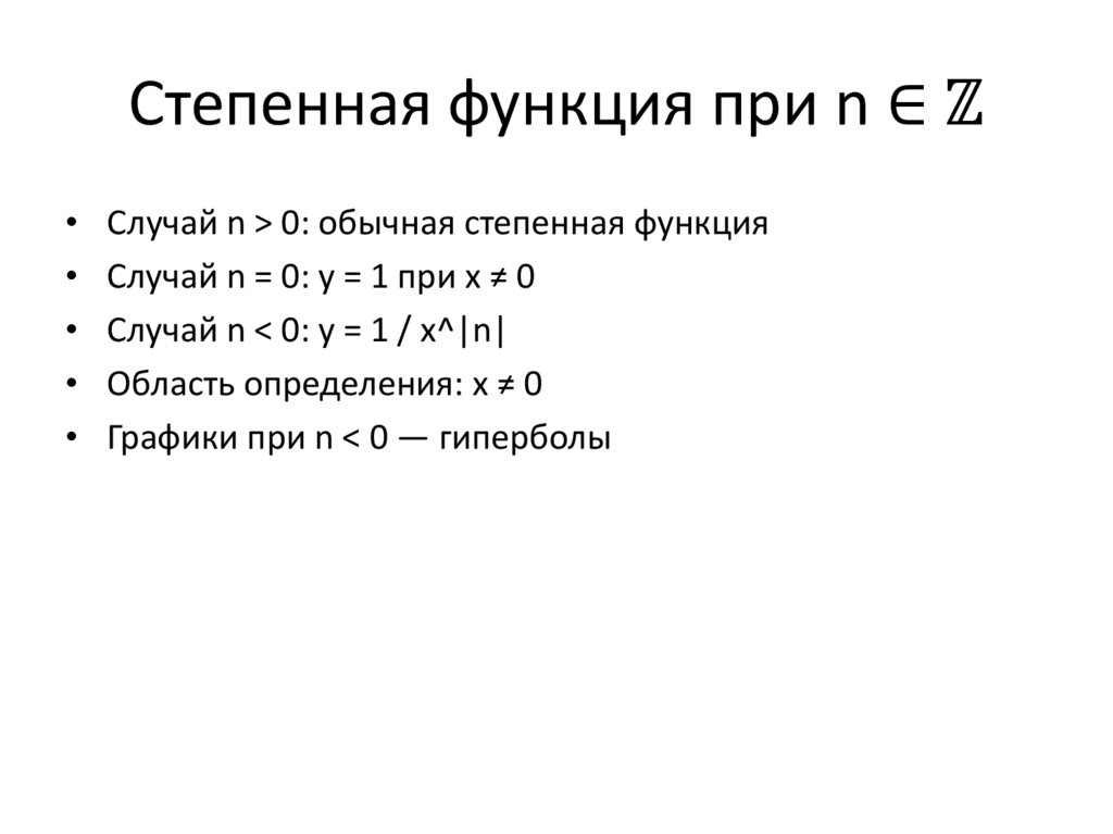 Степенная функция y = xⁿn∈ℕиn∈ℤ