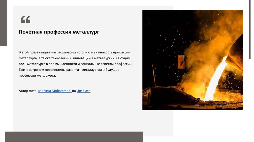 Почётная профессия металлургВ этой презентации мы рассмотрим историю и значимость профессии