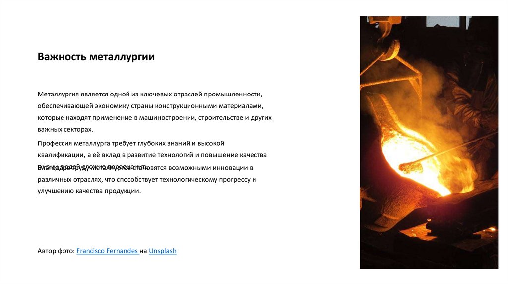 Важность металлургииМеталлургия является одной из ключевых отраслей промышленности,