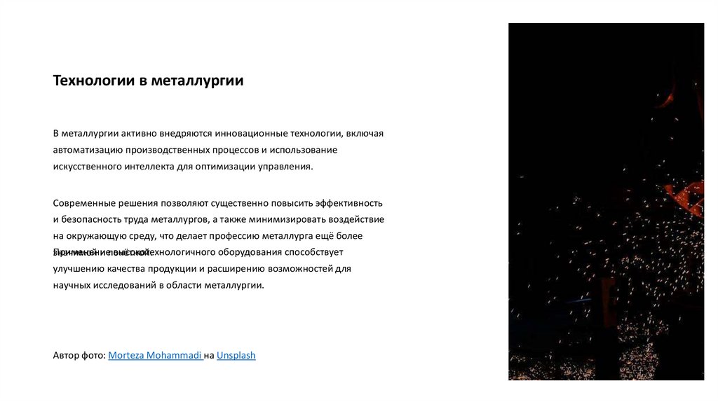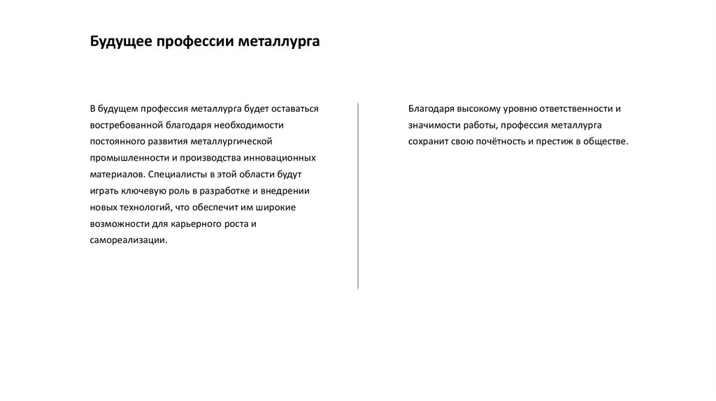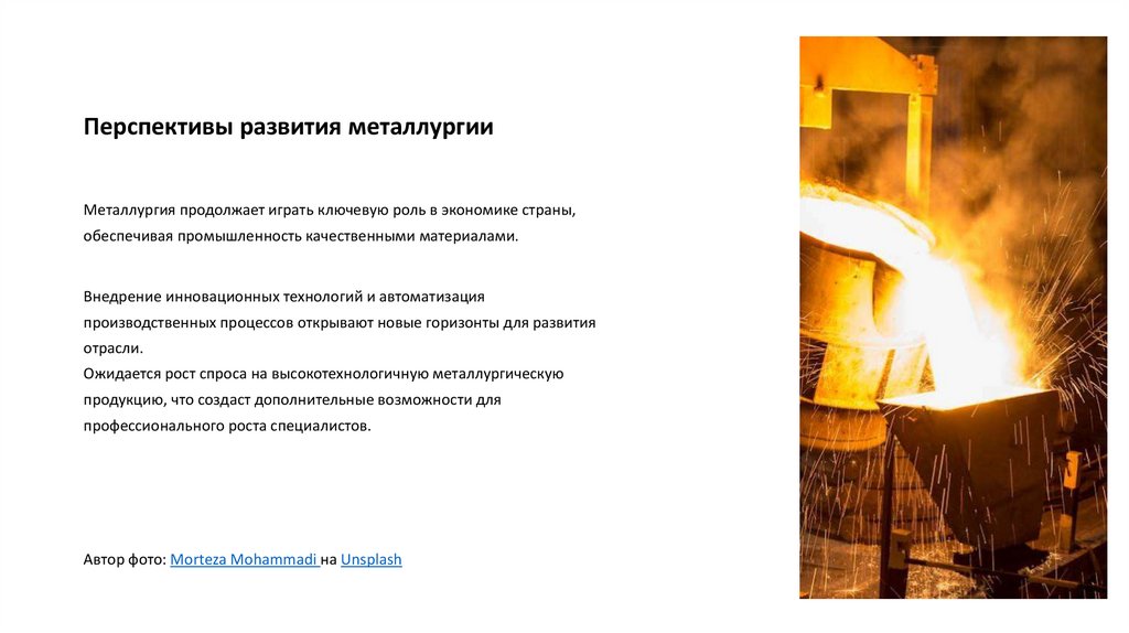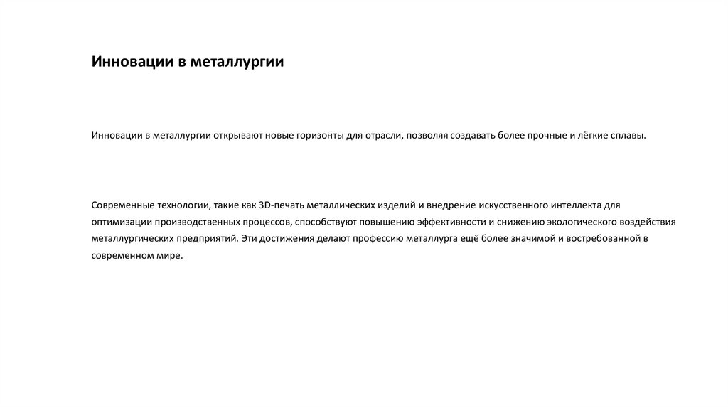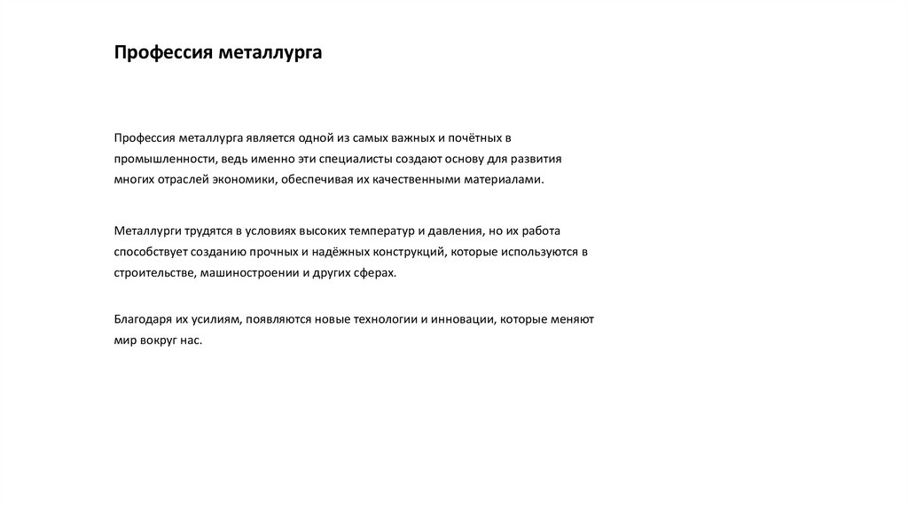 металлургических предприятий. Эти достижения делают профессию металлурга ещё более значимой и востребованной в