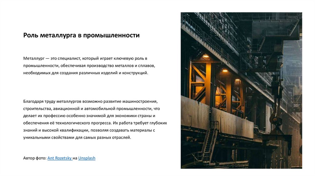 Роль металлурга в промышленностиМеталлург — это специалист, который играет ключевую роль в