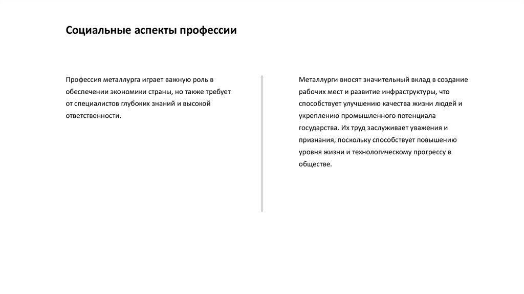 Социальные аспекты профессииПрофессия металлурга играет важную роль в