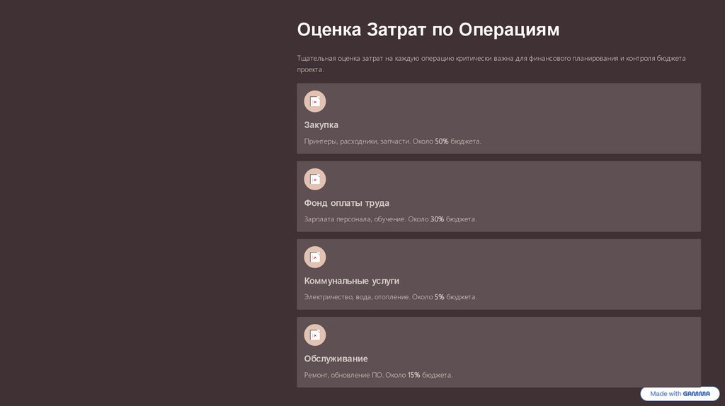 Оценка Затрат по ОперациямТщательная оценка затрат на каждую операцию критически важна для финансового планирования и контроля бюджета