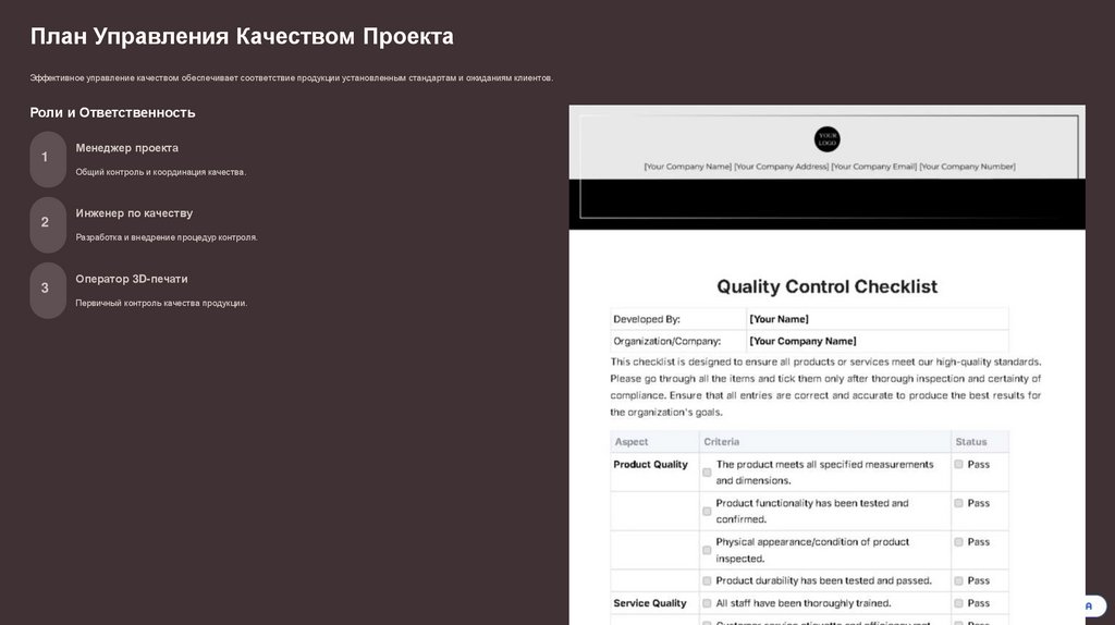 План Управления Качеством ПроектаЭффективное управление качеством обеспечивает соответствие продукции установленным стандартам и ожиданиям клиентов.