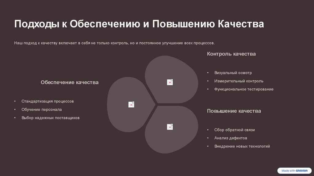 Подходы к Обеспечению и Повышению КачестваНаш подход к качеству включает в себя не только контроль, но и постоянное улучшение всех процессов.